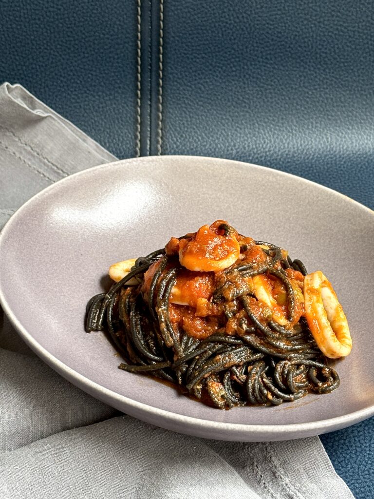 🦑 イカとトマトのイカスミスパゲッティ(Spaghetti al nero di seppia con pomodoro)