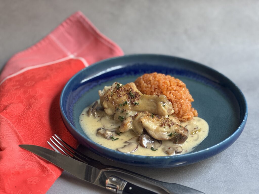 ・鶏肉のフリカッセ 粒マスタード風味 〜トマトピラフ添え〜